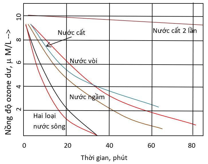- Nước cất hai lần: Tốc độ phân hủy ozone rất chậm.