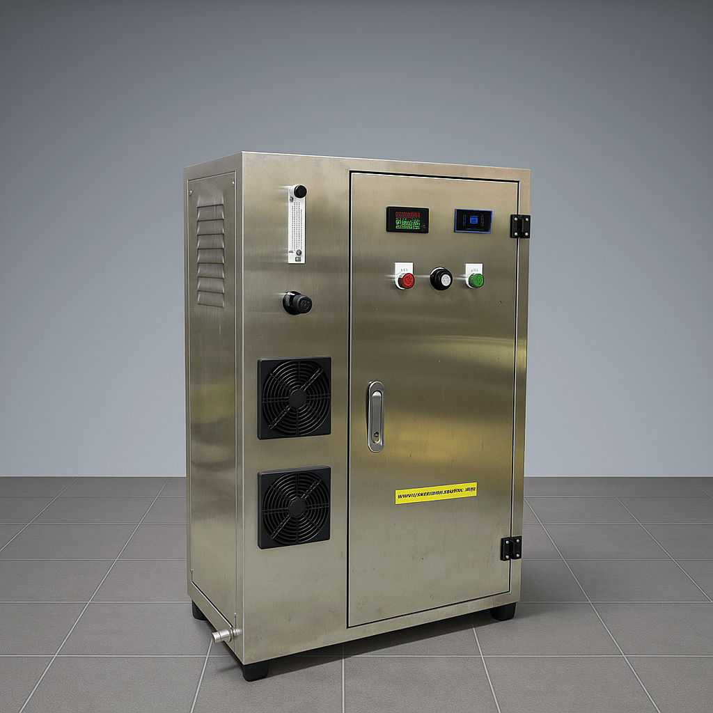 - Không khí khô được dẫn qua máy phát ozone để tạo khí ozone.